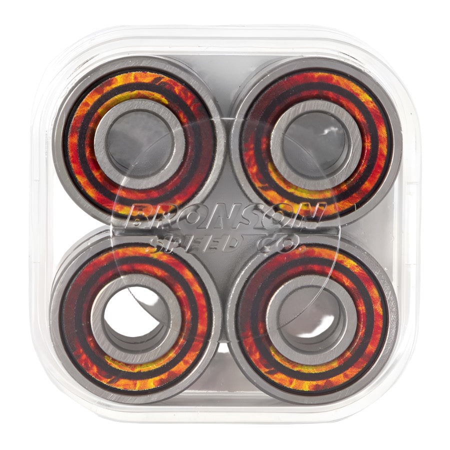 Bronson Speed Co is proud to release Pedro Defino's signature G3 bearing featuring a racing flames colorway with Defino laser etching on the outside bearing race. Go fast, stay fast with Bronson bearings!