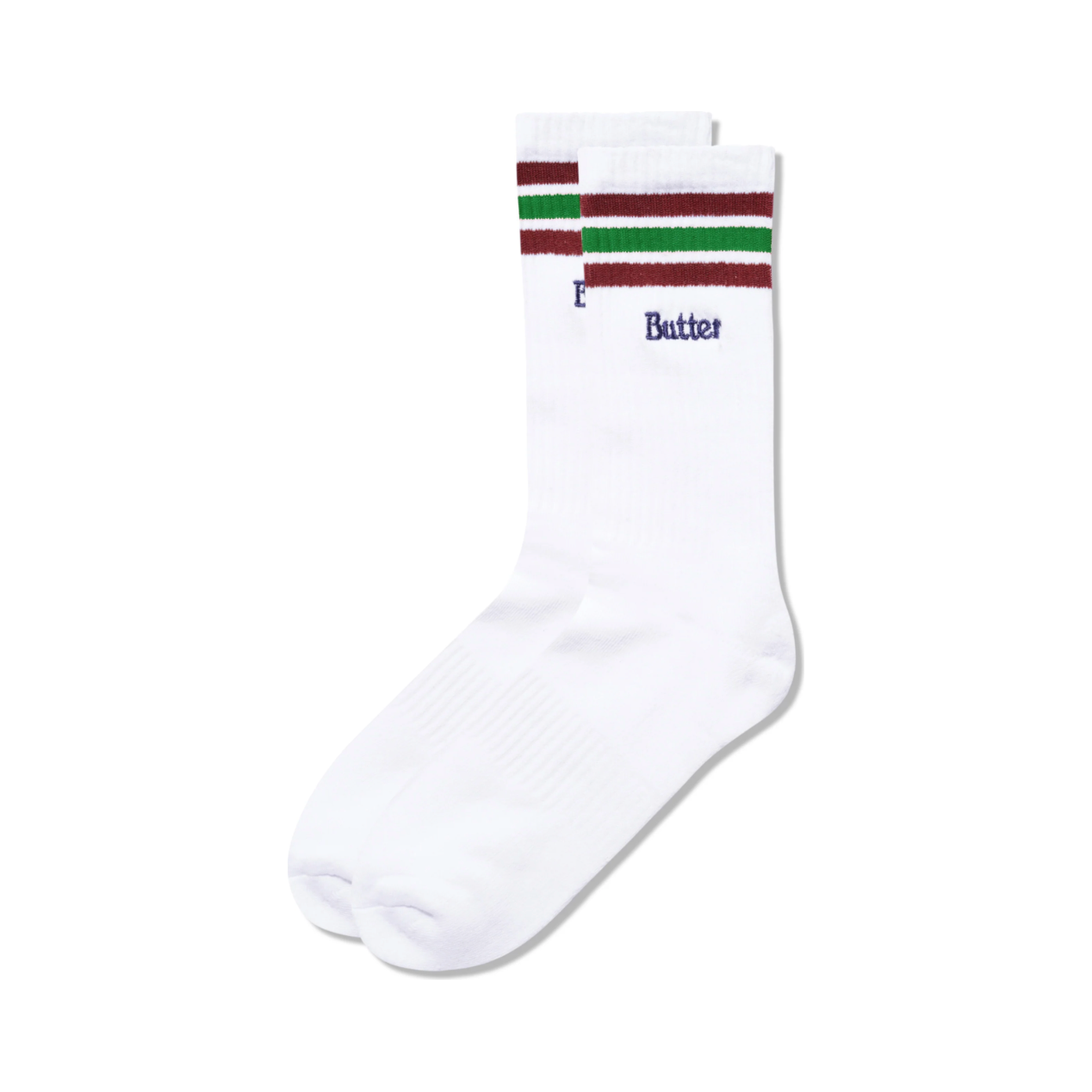 Introducing the Butter Goods Stripe Socks - the perfect addition to your wardrobe! These high-quality socks are designed for maximum comfort and style. Made with premium materials, they feature a classic stripe design that will elevate any outfit. Say goodbye to boring socks and hello to fashion-forward footwear.
