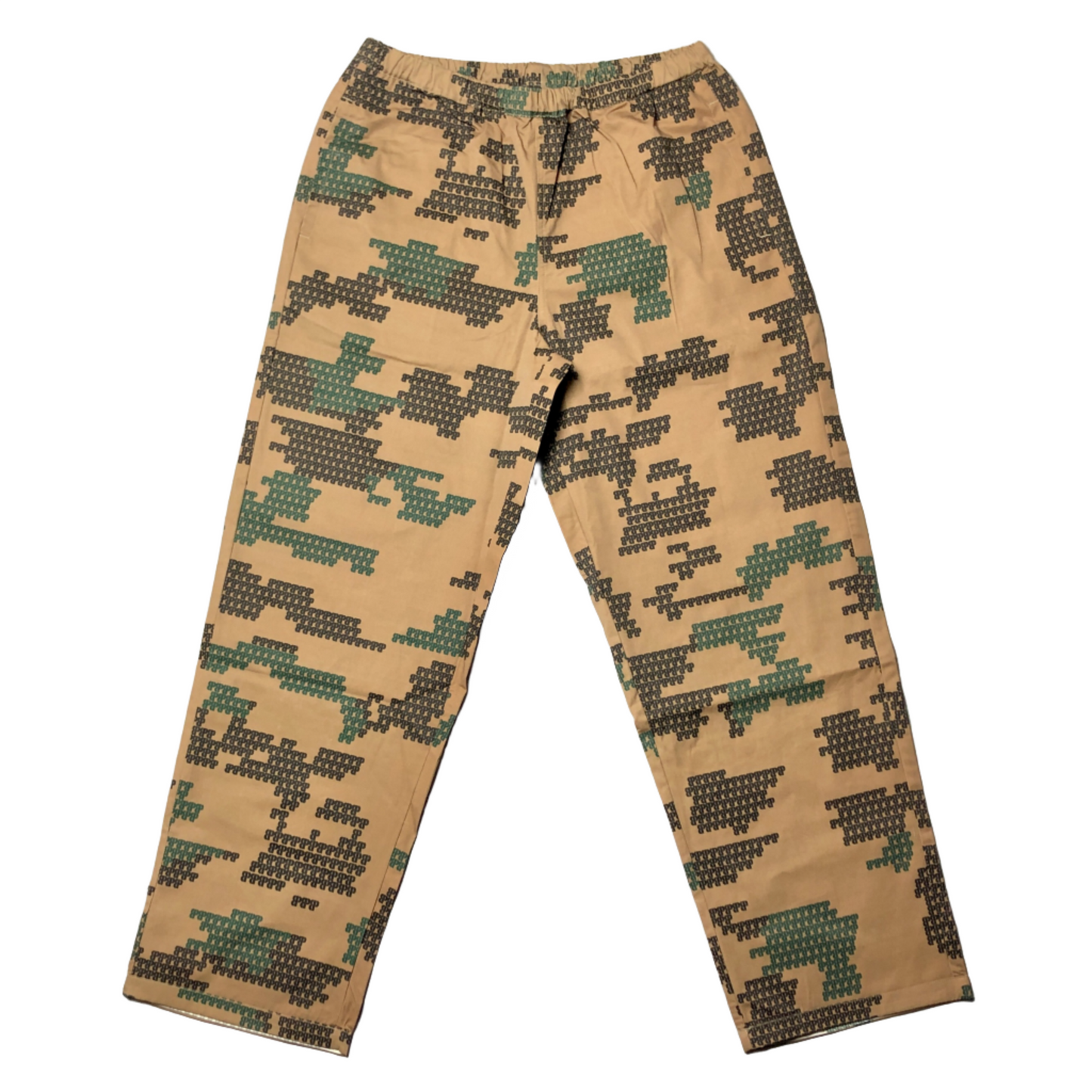 Our Dynasty pant features the same Icon Camo as the reversible vest. Light weight poly cotton. Elastic waist with with draw strings in the waist band and custom printed pocket liners. Zippered contrast back pocket. Baggy fit through out the leg.