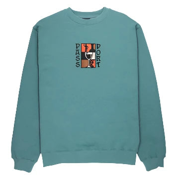 Pass~Port Dine Em' crewneck in washed out teal is apart of range #42. The Pass~Port jumper is made from a cotton polyester blend and features a embroidered graphic on front which is finished in the classic Pass~Port sweater fit.