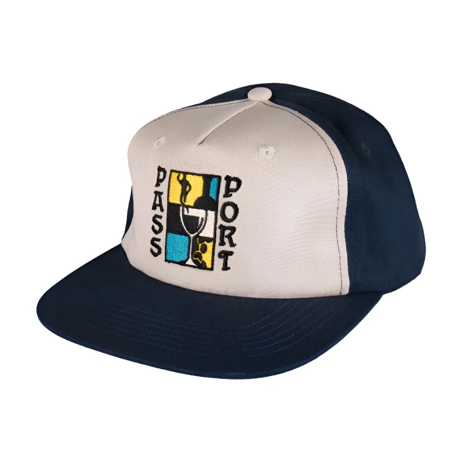 Pass~Port Dine Em' Workers cap in navy / off white from range #42. The Pass~Port hat is a 5 panel construction made from 100% cotton and features direct embroidery on front with snapback adjustment.