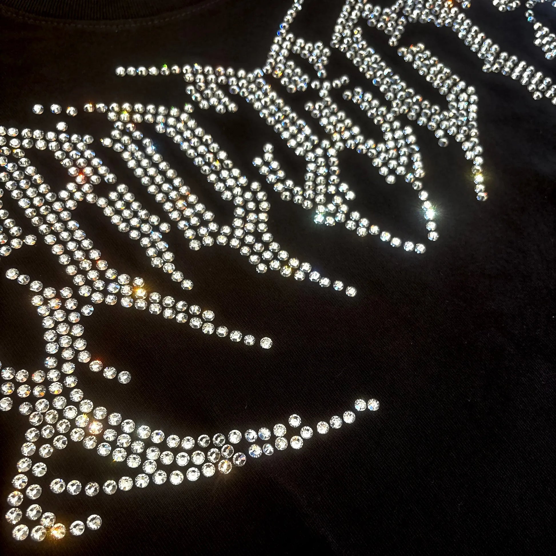 Bling Bling !!! Guaranteed to shine bright like a diamond. Printed on our custom fit heavyweight 7 oz cotton blank. Rhinestone appliqué . Boxey fit. Pre shrunk 100% cotton.